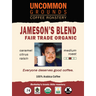 Jameson’s Blend FTO is a dark, Fair Trade Organic blend designed for a big, satisfying cup. Heavy body, dark cocoa, and hints of spice make it a standout for strong-brew lovers.